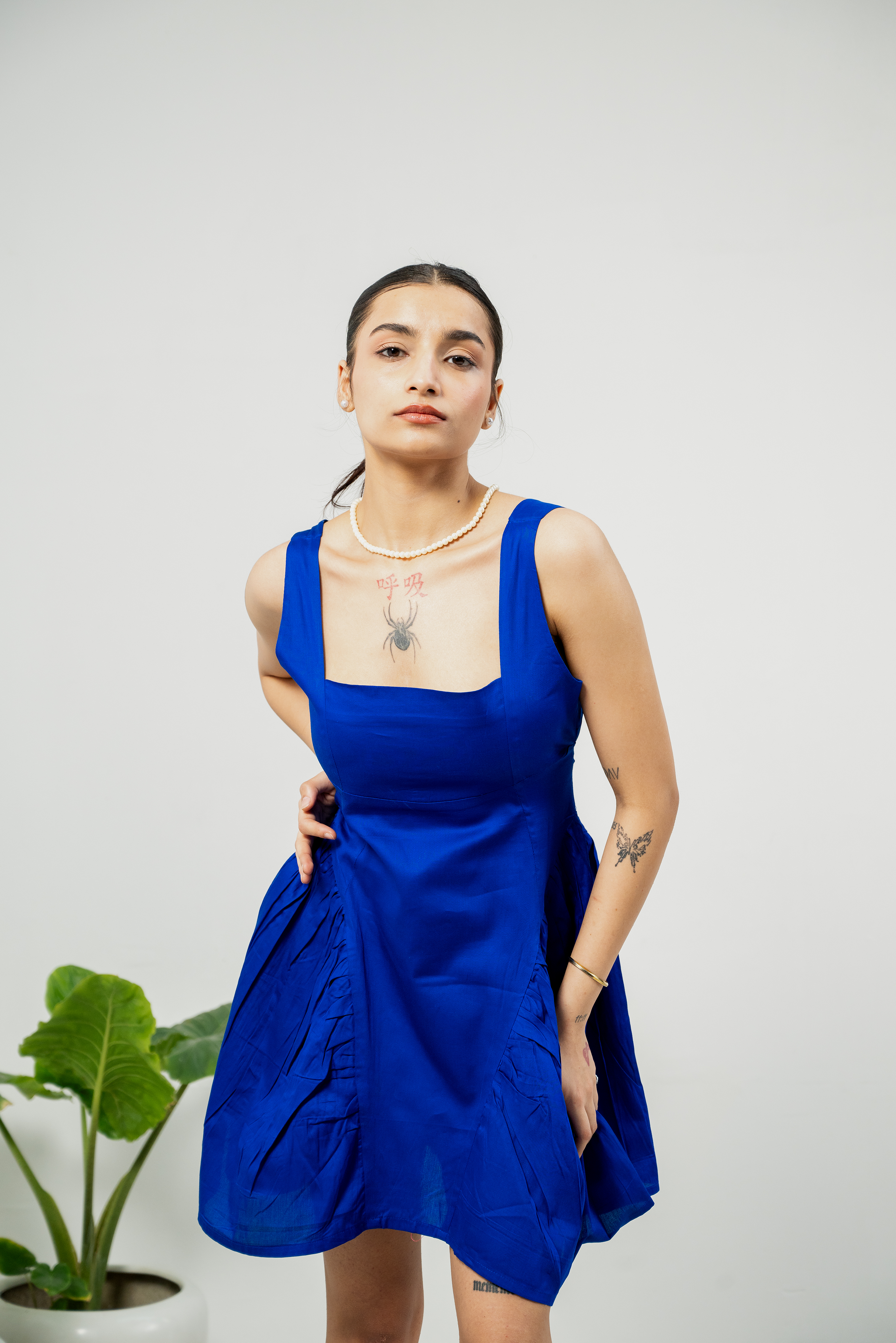 Striking yet playful, this royal blue flare dress brings bold silhouette and effortless chic together—perfect for making an entrance with confidence and flair.